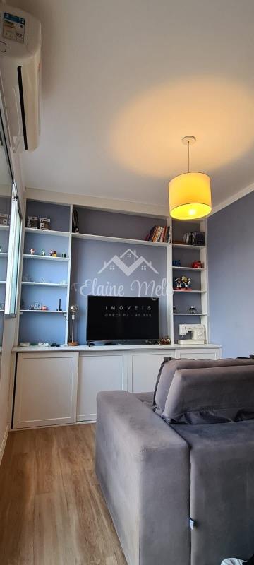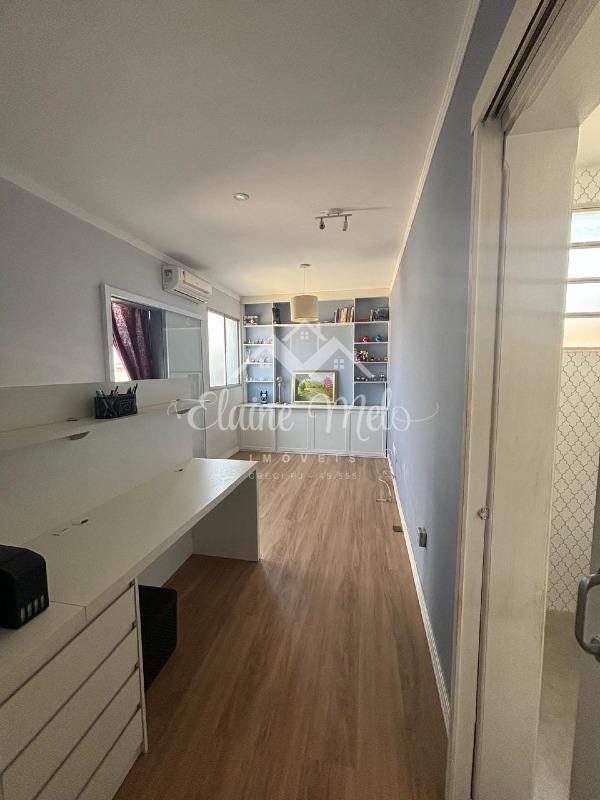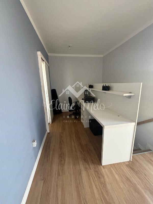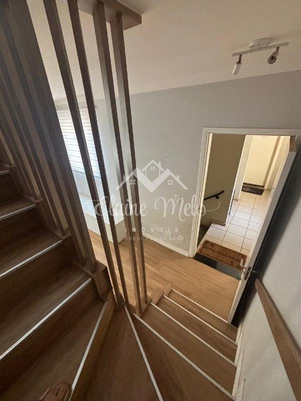 Na parte de cima uma sala de TV com escritório projetado com armários e ar condicionado instalado, um lavabo/lavanderia com armários e um quintal com bancada para instalação de churrasqueira, linda vista para a cidade.