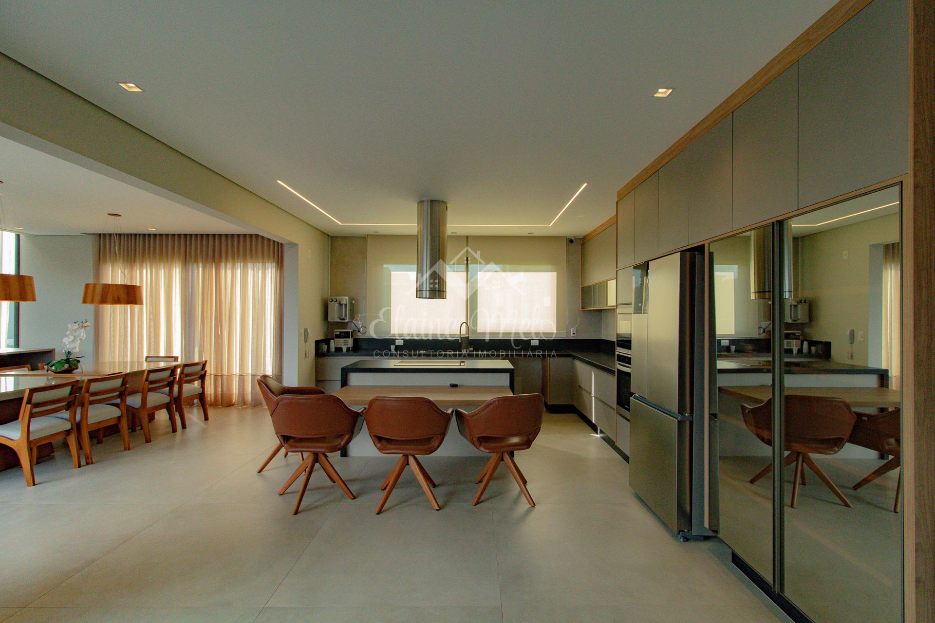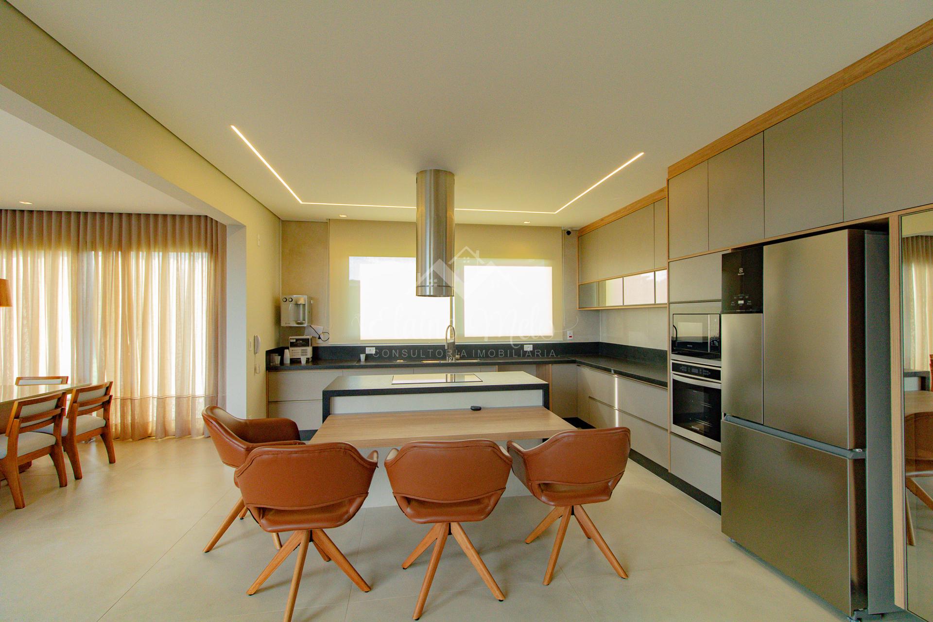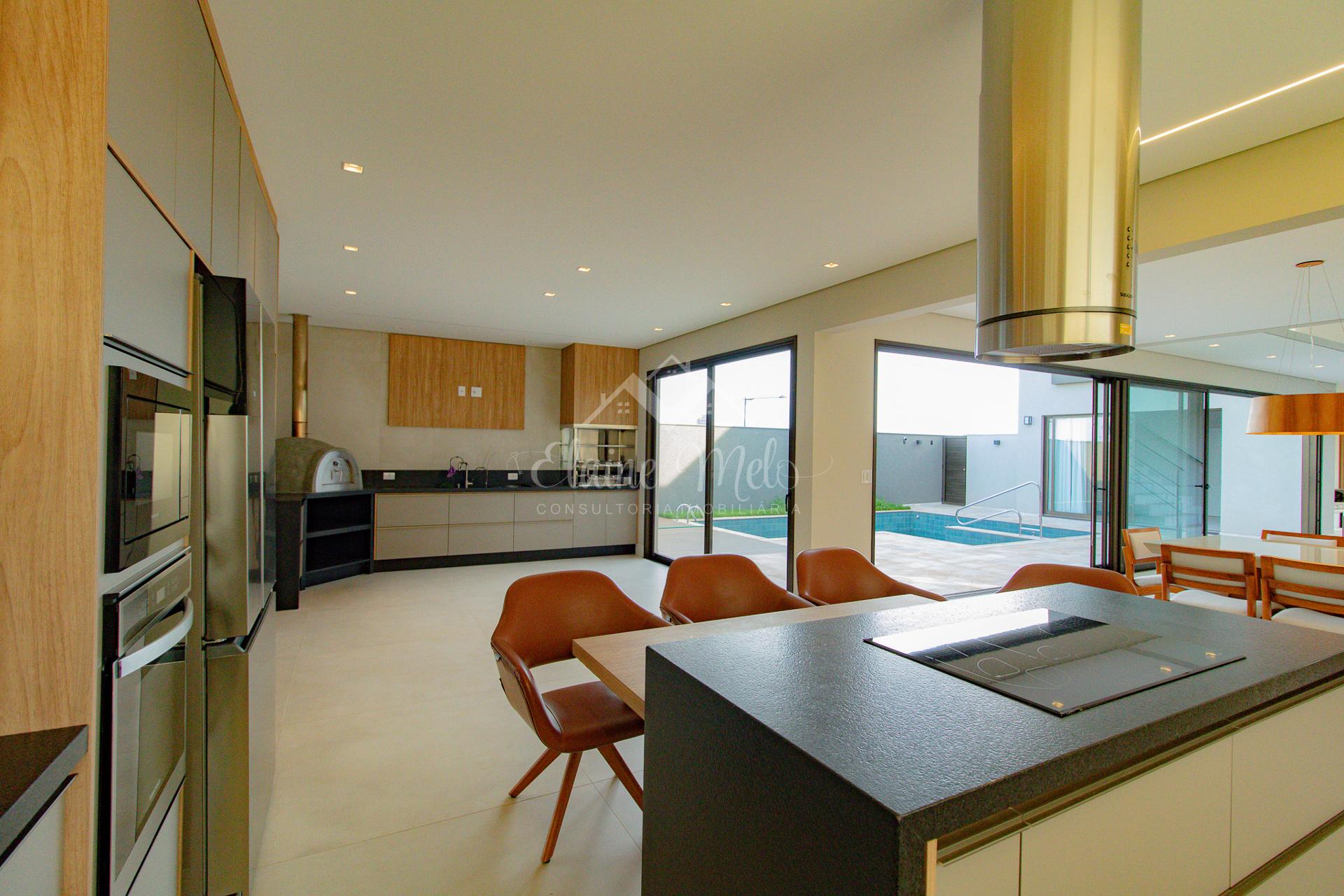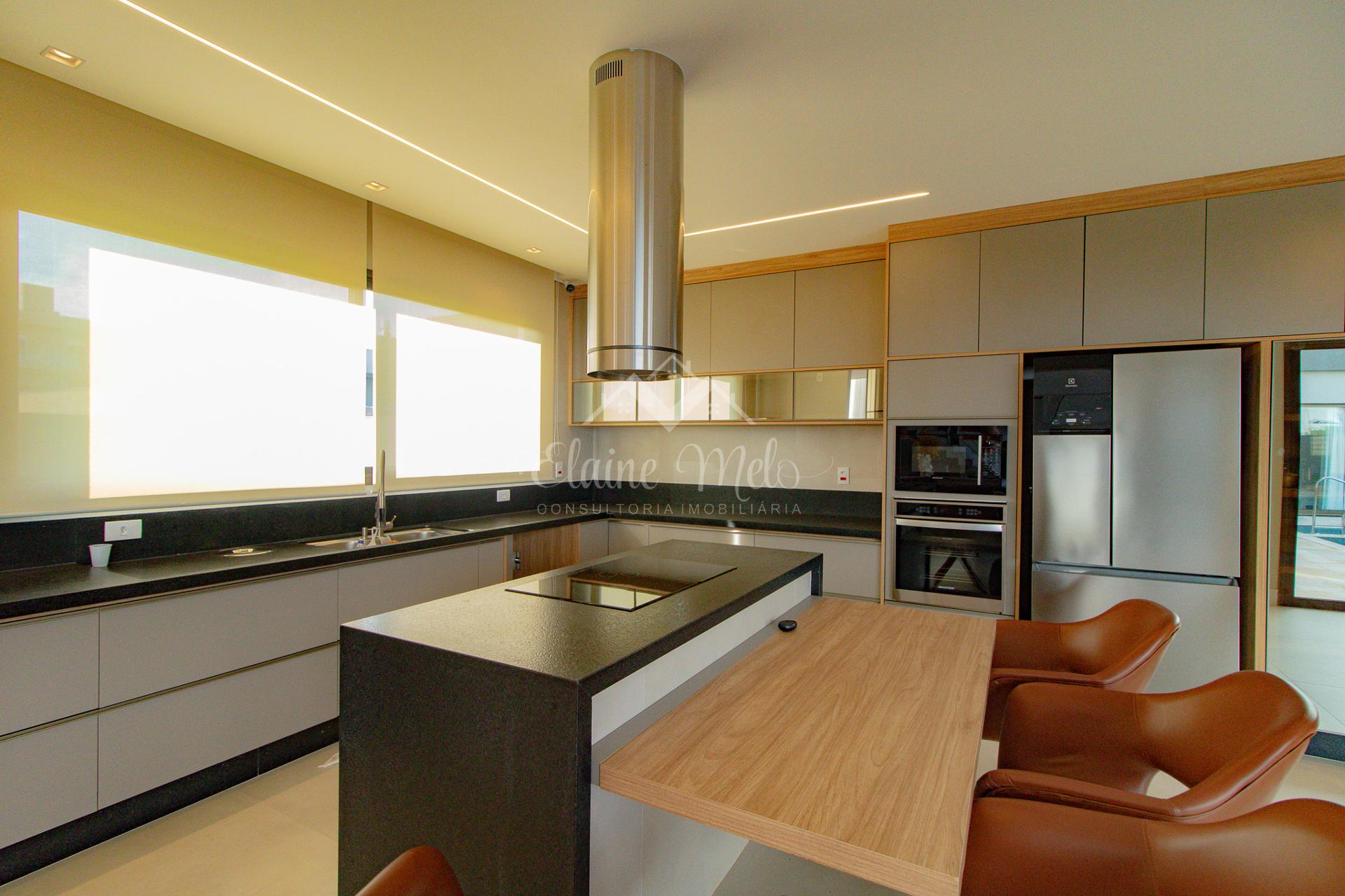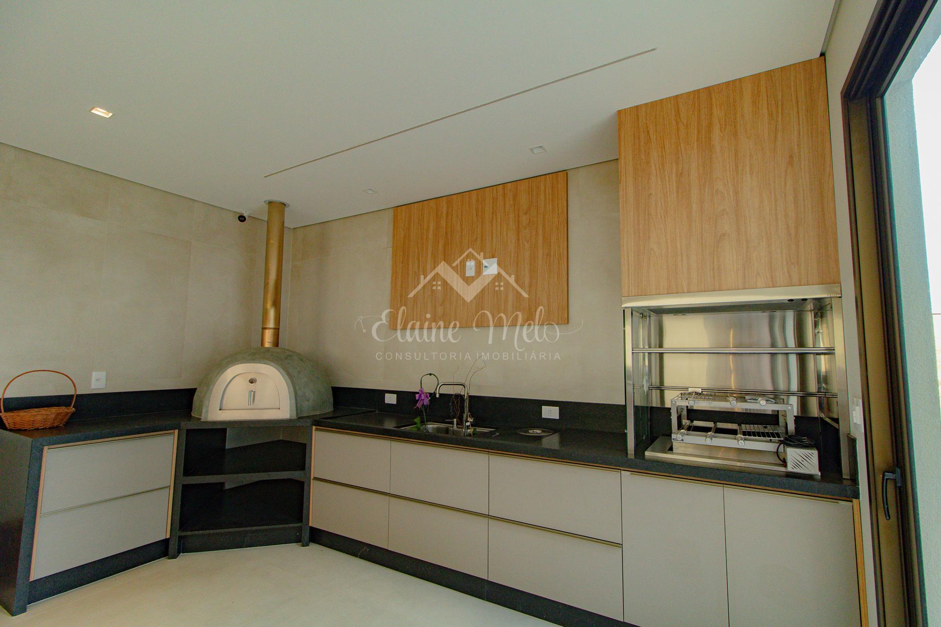 Ampla cozinha e espaço gourmet integrados (com churrasqueira e forno de pizza)