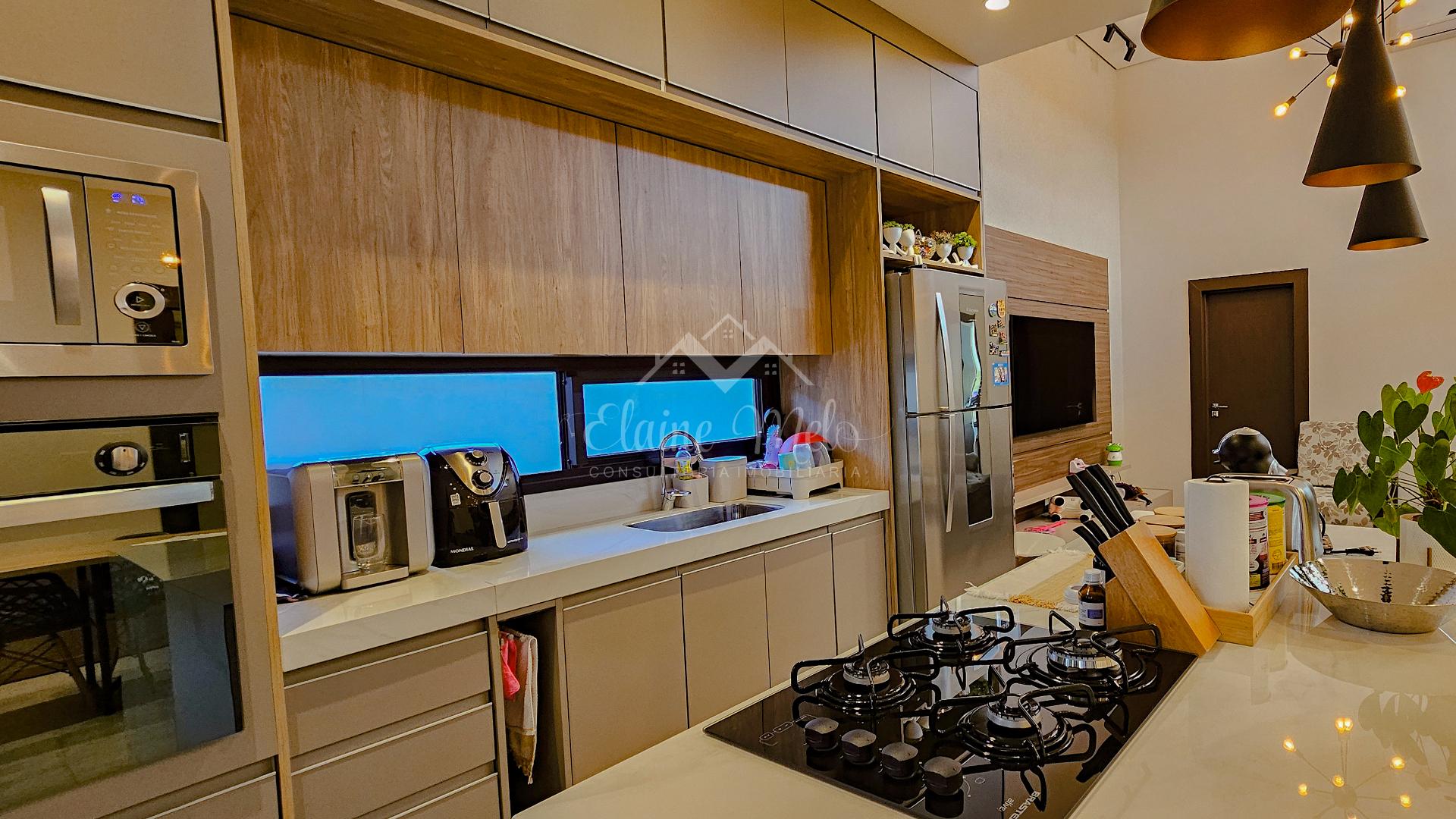 COZINHA ESTILO AMERICANO TOTALMENTE INTEGRADA COM ÁREA DE LAZER COM CHURRASQUEIRA
